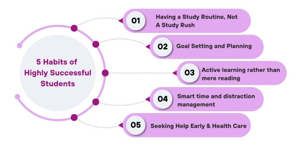 Perhaps the most underrated habit of high-achievers is the bravery to ask questions when no assistance is provided. Rather than feeling embarrassed or postponing to the last minute, they approached teachers, peers, or relatives for a prompt resolution to avoid minor queries from escalating into major problems. In addition to this, they emphasize rest, nutritious meals, and a little bit of exercise because research indicates that a sound body facilitates smoother functioning focused attention, improved retention, and better emotional regulation.