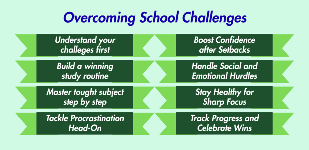 School can feel really tough. There are deadlines, hard subjects, friend problems and times when you might feel unsure of yourself. You can overcome school challenges with the right mind set and plans. Whether you’re a student having trouble focusing or a parent watching your child struggle with school, these tips can help.